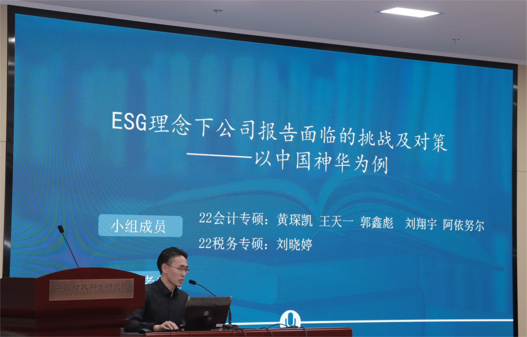 本次案例大赛初赛选择小组展示的形式,来自不同专业的90名学生自愿分为15支参赛团队。每支团队围绕可持续发展成为全球热潮下ESG报告与传统财务报告的关系、二者在评价公司业绩中发挥的作用及局限性、ESG理念下公司报告面临的挑战等方面依次进行了10分钟的展示。五位专家评委根据案例水平及选手表现依此点评并为每支队伍评分,最终决选出进入到复赛的前6名队伍。