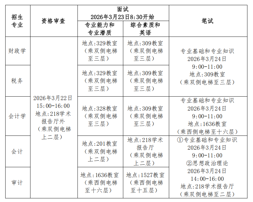 2.笔试和面试。各专业笔试和面试科目请见“二、复试相关规定(四)复试安排”。