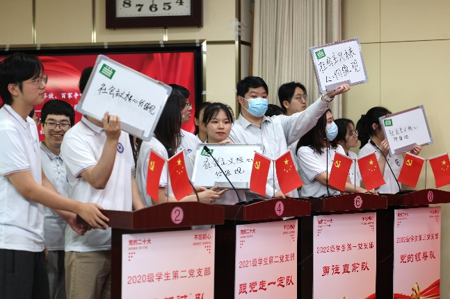 本次知识竞赛主要围绕党的二十大报告原文,结合中国共产党党史、新中国史、改革开放财税史等相关内容,题量丰富、知识覆盖面广,旨在以赛促学、以赛验学。采用单选题、多选题、不定项选择题、判断题以及视频记忆题、音频抢答题等多种形式进行,推进党的二十大精神学习往深里走,实里走。八支参赛队伍火力全开、你争我赶,现场观众积极互动、踊跃答题,学生自制原创节目诗朗诵《学习二十大,志愿新征程》及情景剧《对话时空》声情并茂、荡气回肠。经过初赛、加时赛、复活赛和决赛,共四轮、两个多小时的激烈角逐,最终决出一等奖一名、二等奖一名、三等奖两名。