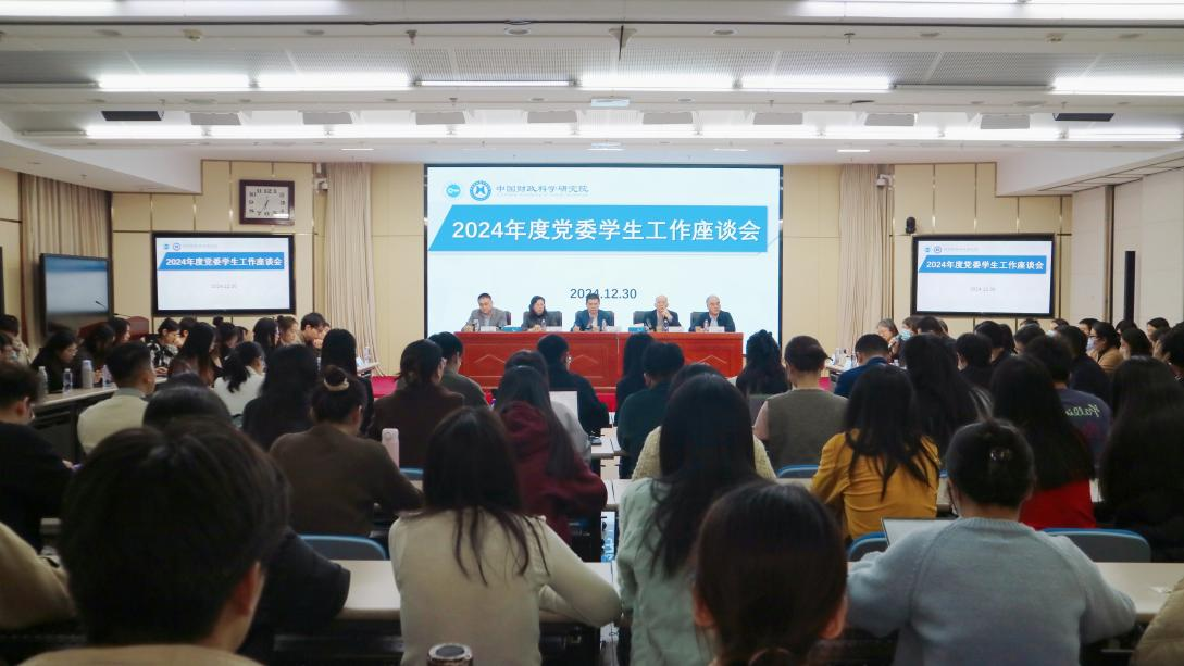 2024年12月30日晚,中国财政科学研究院(以下简称财科院)党委在218学术报告厅召开学生工作座谈会。财科院党委书记、院长杨志勇,财科院党委委员、研究生院院长杨远根,财科院党委委员、副院长邢丽,财科院党委委员、副院长徐玉德出席,财科院党委委员、纪委书记王宏伟主持座谈会。党委(纪委内审)办公室、办公室、图书馆(财科院数据中心)、研究生院副院长马洪范及各机构负责人、班主任和80余名学生代表参会。