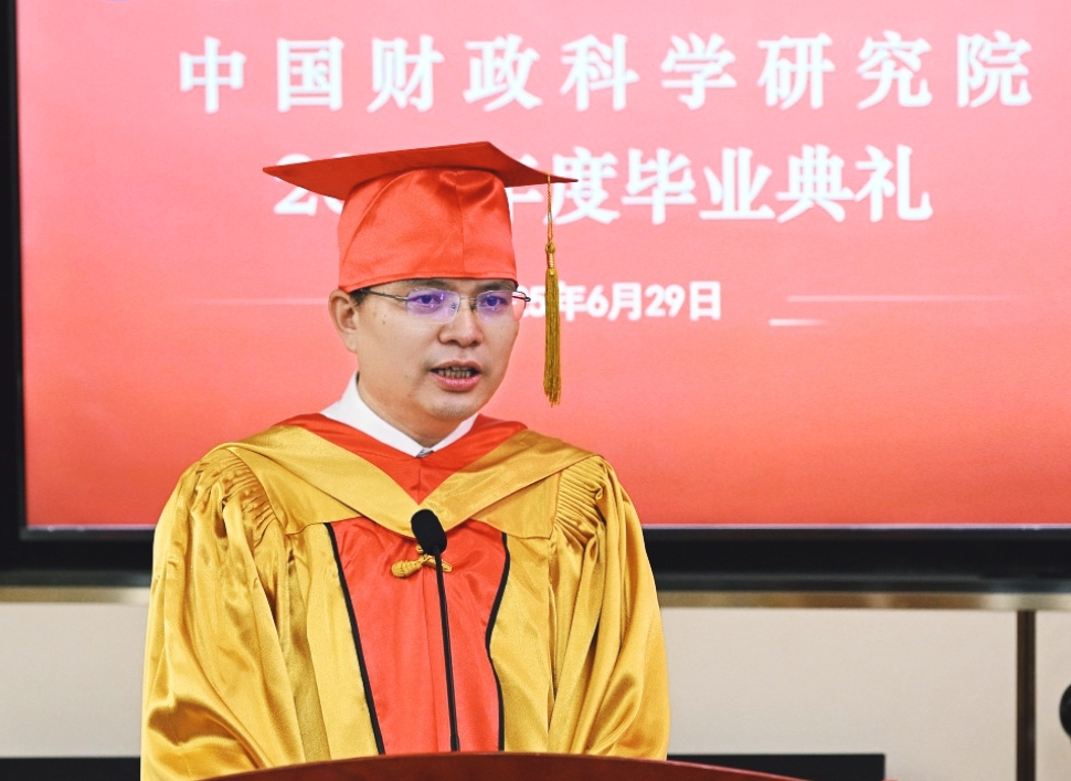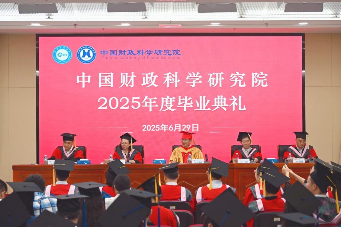 6月29日下午,中国财政科学研究院(以下简称财科院)举行2025年毕业典礼暨学位授予仪式。财科院党委书记、院长杨志勇,国务院参事室特约研究员、财政部政府采购管理办公室原主任娄洪,财科院党委委员、副院长邢丽,财科院党委委员、纪委书记王宏伟出席典礼,2025届毕业生、院内外导师、班主任及部分学生家长参加,典礼由财科院党委委员、副院长徐玉德主持。