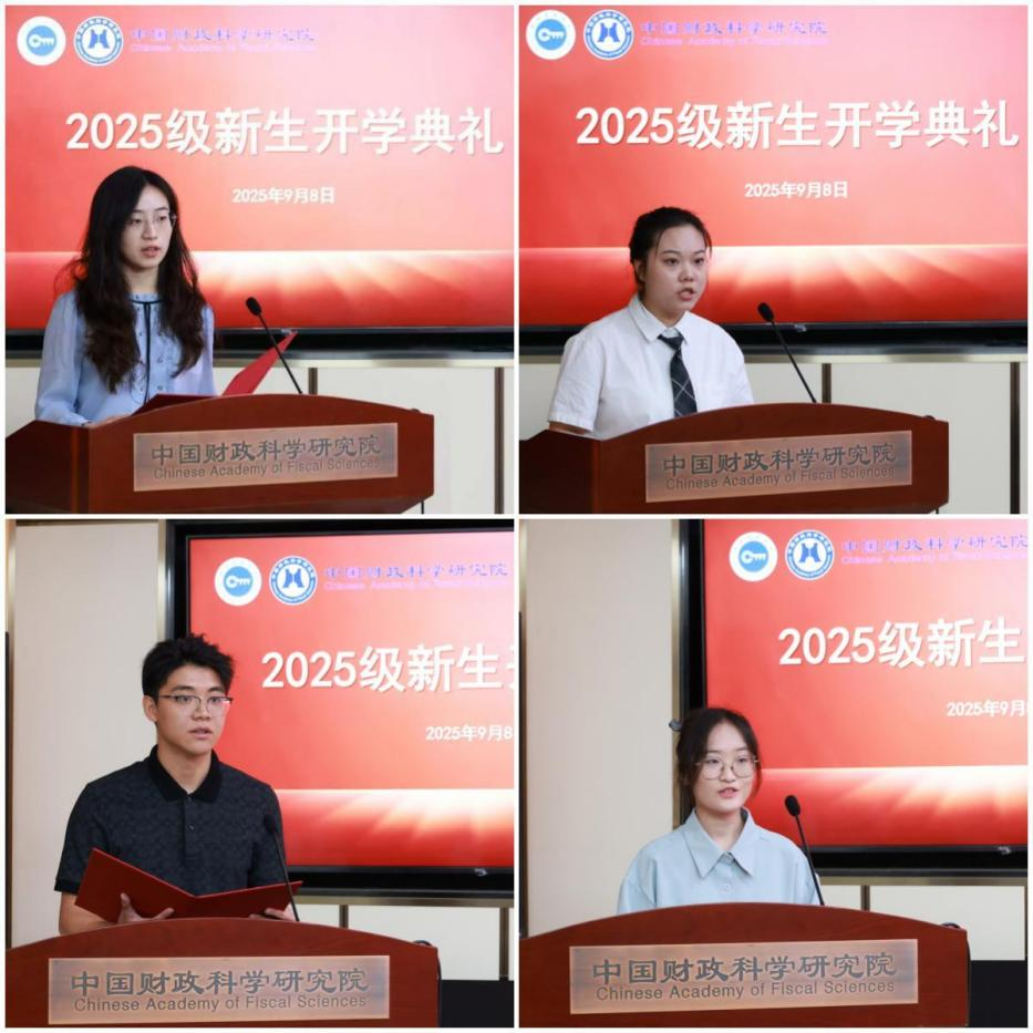 2025级财政学博士王萌、2025级财政学硕士周瑜婷、2025级会计硕士曹阳、2025级审计硕士张凌怡作为新生代表发言。