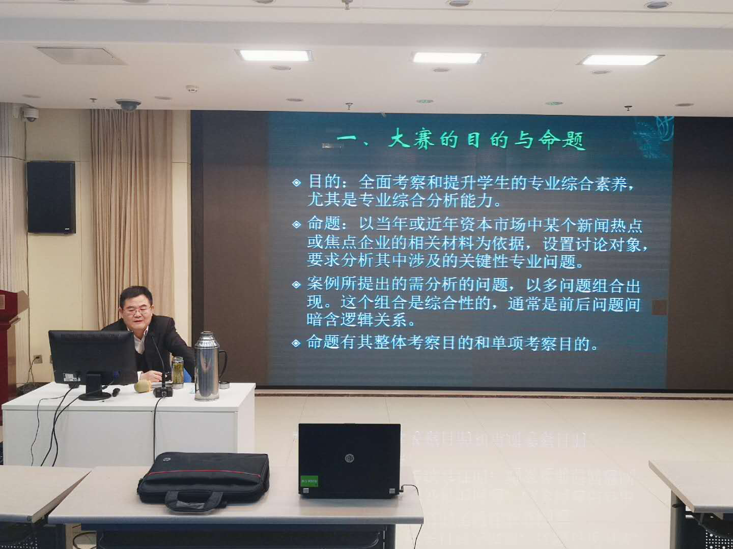 课程开始,李老师向大家细致剖析了本次案例大赛的目的和命题。本次大赛旨在全面考察和提升学生的专业综合素养,尤其是专业综合分析能力。以当年或近年资本资本市场中某个新闻热点获得的企业相关材料为依据,设置讨论对象要求分析其中二级的关键性专业问题。李老师分析到,大赛的命题具有其整体考察目的和单项考察目的,我们要学会把握各个题目之前暗含的逻辑关系。
