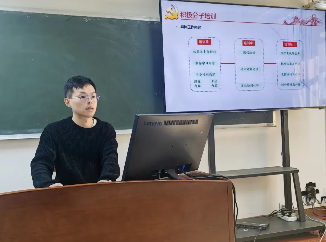 在经验交流课程中,李健和彭煜中作为2022级学生支部委员代表,结合支部实际工作,与新任支委进行经验分享与交流。他们主要围绕学生党支部的基本情况、工作重点、学生党支部发展对象评分细则、入党积极分子培训流程等工作进行讲解,并就自身的经验与新任支委交流心得体会。在互动讨论时,在场支委纷纷表示,学生党支部工作需要大家的共同努力和相互支持,新任支委要快速适应身份,积极投入到支部工作中,希望新的力量可以开拓思路,共同推进财科院学生支部工作的创新和发展。