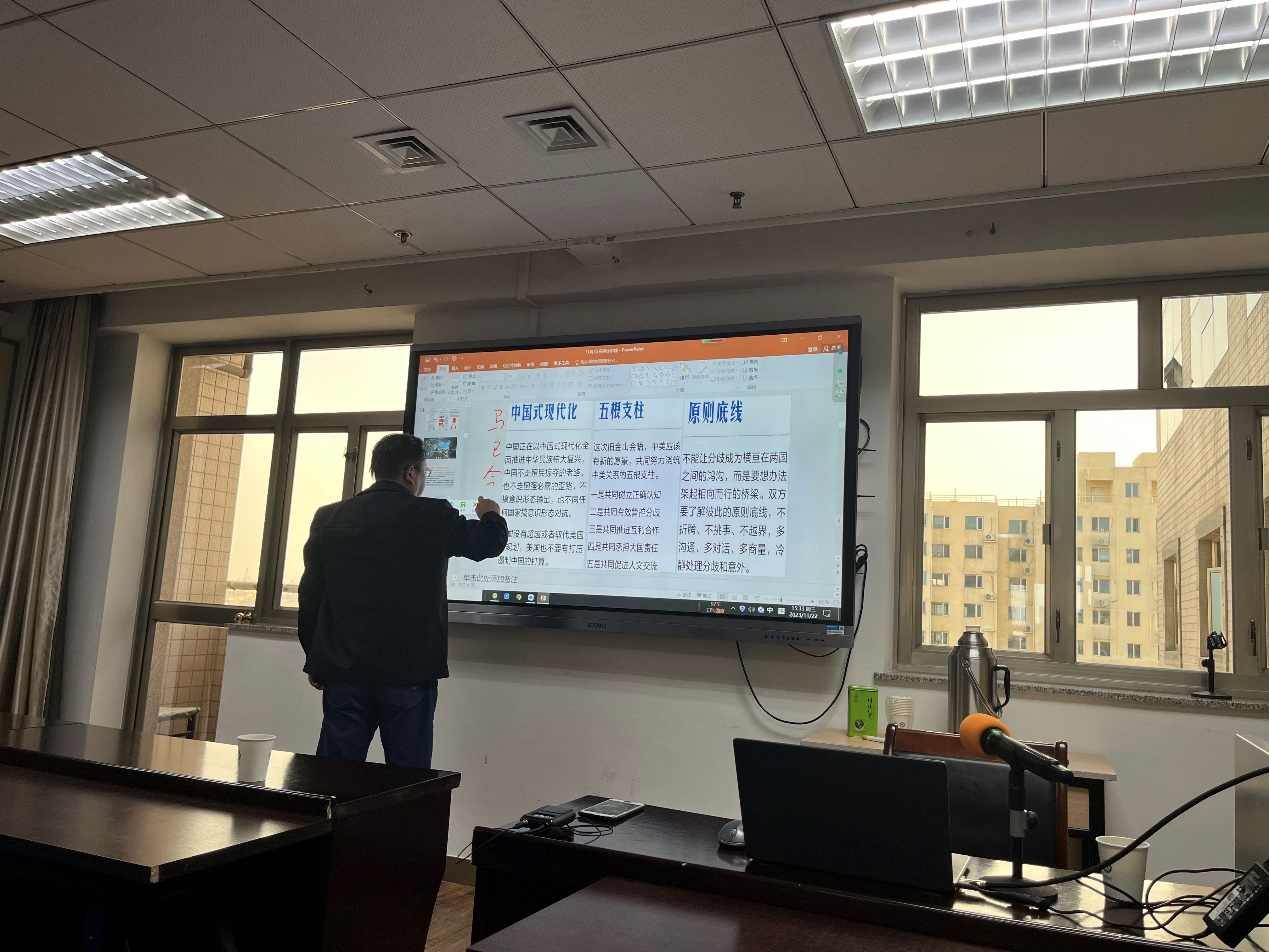关于二十大中经济层面的内容,许安拓研究员指出,中国式现代化是新时代新征程的中心任务,未来中国发展举措将聚焦六大抓手,努力实现中国式现代化。同时,新时代下党的使命任务发生了转变,实施两步走战略安排有利于加快实现我国的现代化。许安拓研究员还向同学们详细阐述了什么是中国共产党领导的现代化、什么是人口规模巨大的现代化、什么是全体人民共同富裕的现代化、什么是物质文明和精神文明的现代化、什么是人与自然和谐共生的现代化以及什么是走和平发展道路的现代化。