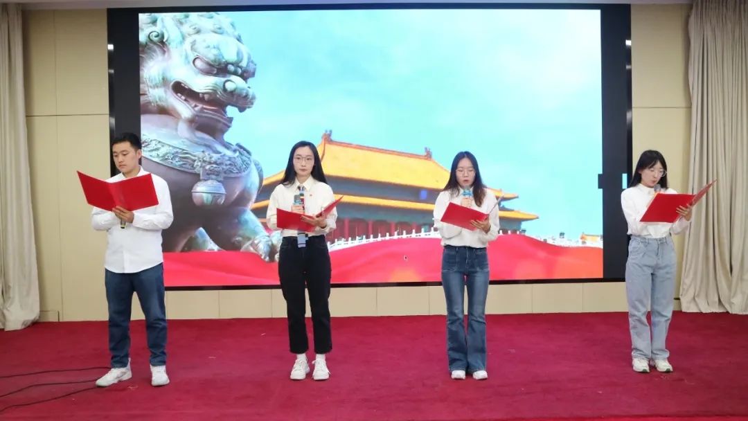伴随着激昂的旋律,2022级孙振皓、孙千茹、王菲、黄如月四名同学进行诗朗诵《历史不会忘记》。他们用真挚的情感、生动的语言,感染了在场的每一位师生,诠释了对“一二·九”运动的感怀和追思,展现了新时代青年的爱国情怀和责任担当。